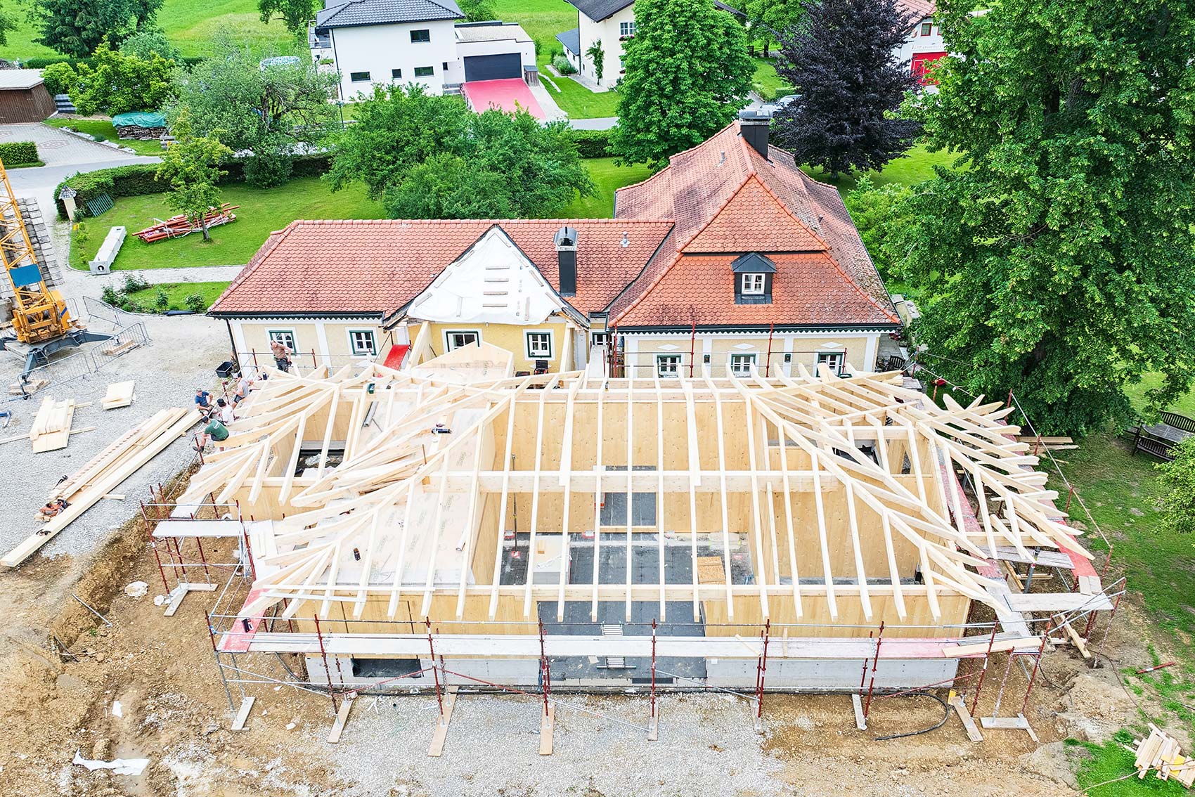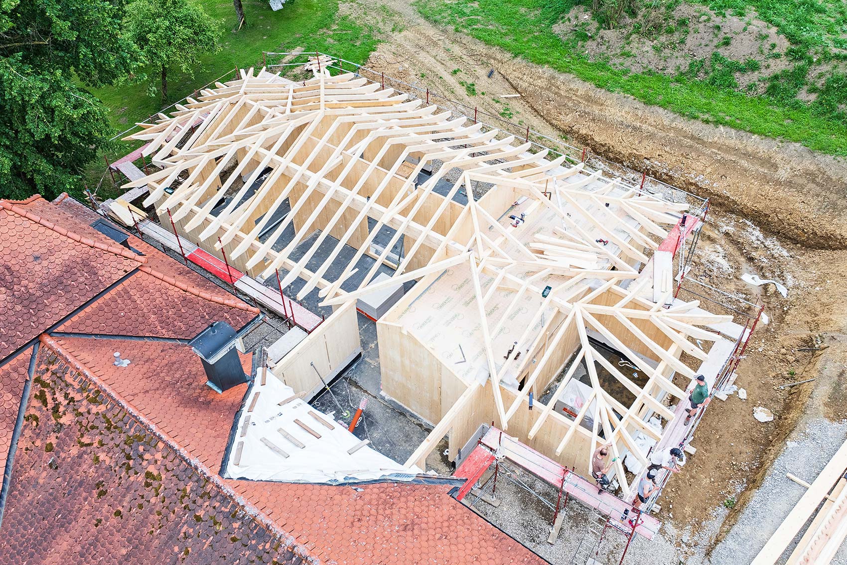 Es wird kein Pool! 🙂 Wir dürfen gerade mit Schönleitner Bau GmbH und Spitzer Holzbau ein Holzhaus in Kogl errichten. Der Fortschritt der letzten Tage zeigt allen, die fest an einen sehr großen Pool geglaubt haben, dass es doch ein Haus wird 😉